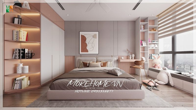 Lựa chọn mẫu giường ngủ chung cư gỗ công nghiệp nhẹ nhàng mà không kém phần hiện đại ở không gian phòng ngủ của con