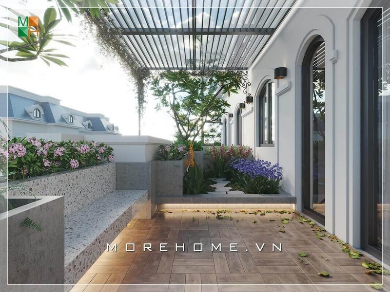Để tạo nên những cảm giác mới lạ, thoáng đãng để thư giãn và tận hưởng cuộc sống, thiết kế nhà phố với phần ban công rộng để trồng hoa và bố trí ghế đá sáng tạo độc đáo là điều cần thiết.