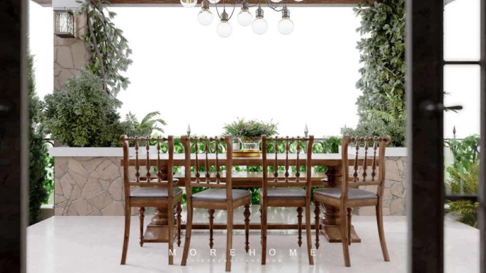 Ghế gỗ tự nhiên được trang bị đệm da địa trung hải với kiểu dáng đặc biệt, cung cấp sự thoải mái và dễ chịu cho người sử dụng.